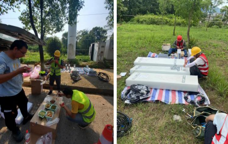 黄石移动5G4期工程施工现场,现场饭点不休息,确保工程进度。